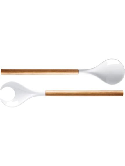 Porcelaine salad servers with wooden handle